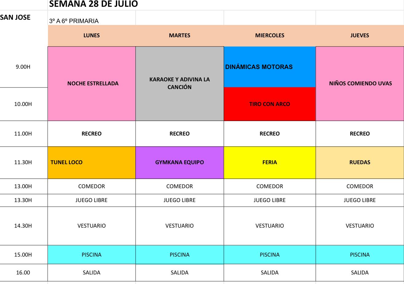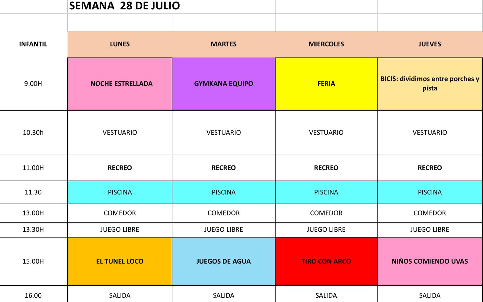 INFANTIL semana 28 al 31 de Julio